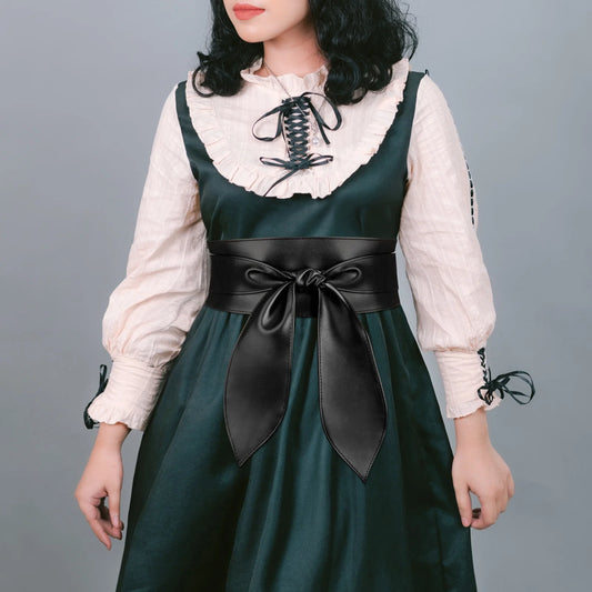 Womens Obi Belts Black Wrap Wide Leather Belts for Women Fit for Waist Size 24"-31"