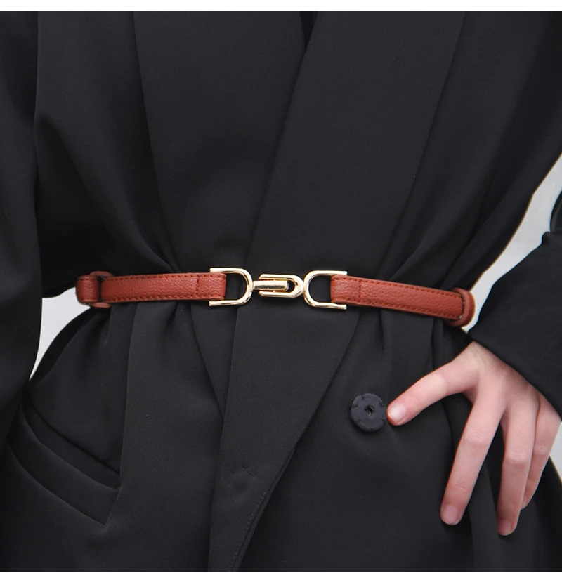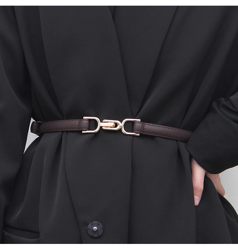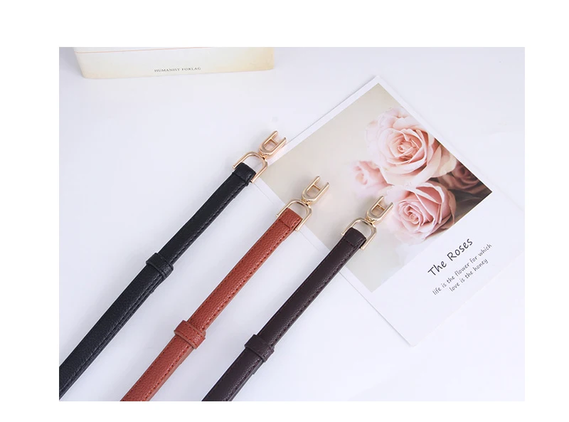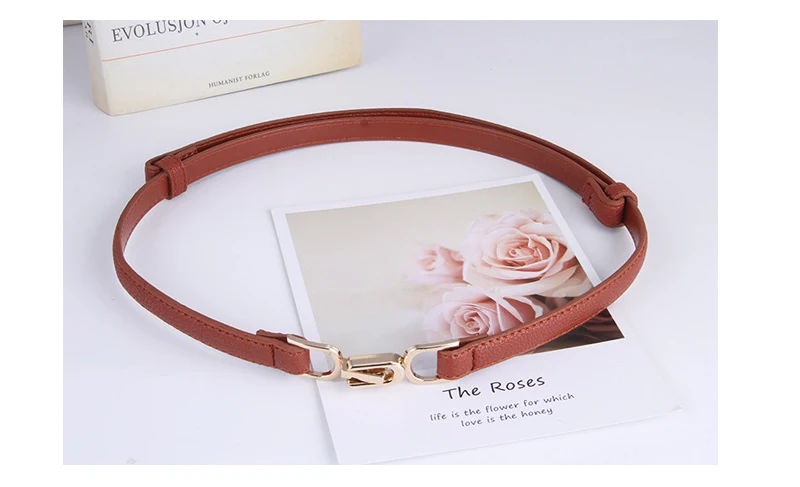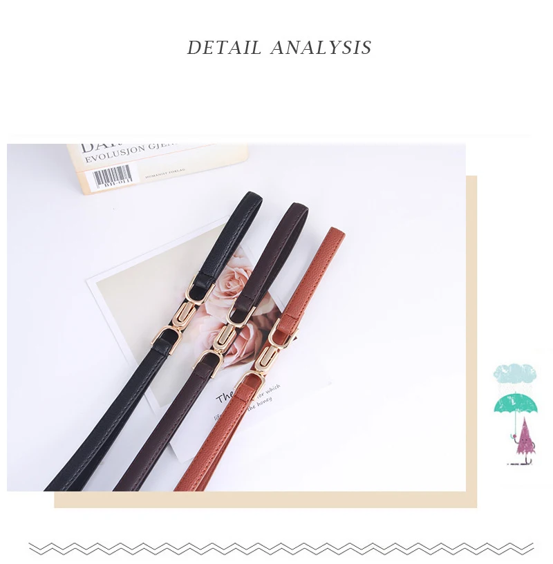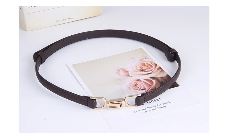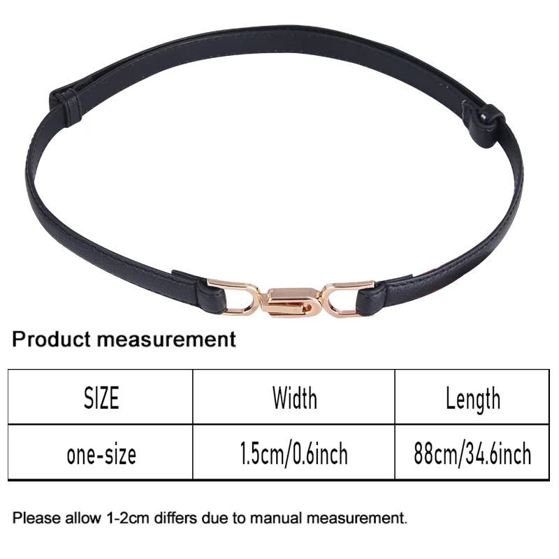Womens Leather Skinny Belt for Dress Adjustable Thin Waist Belt Dress Belt with Vintage Gold Buckle Faux Leather
