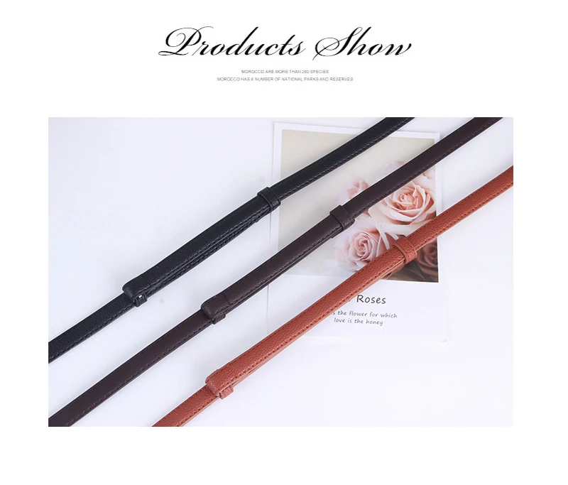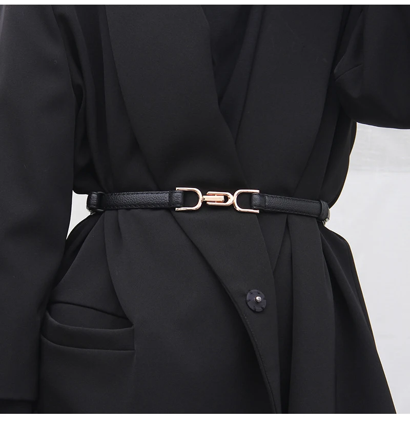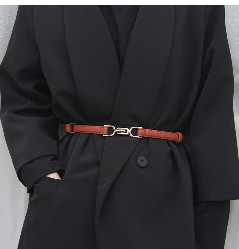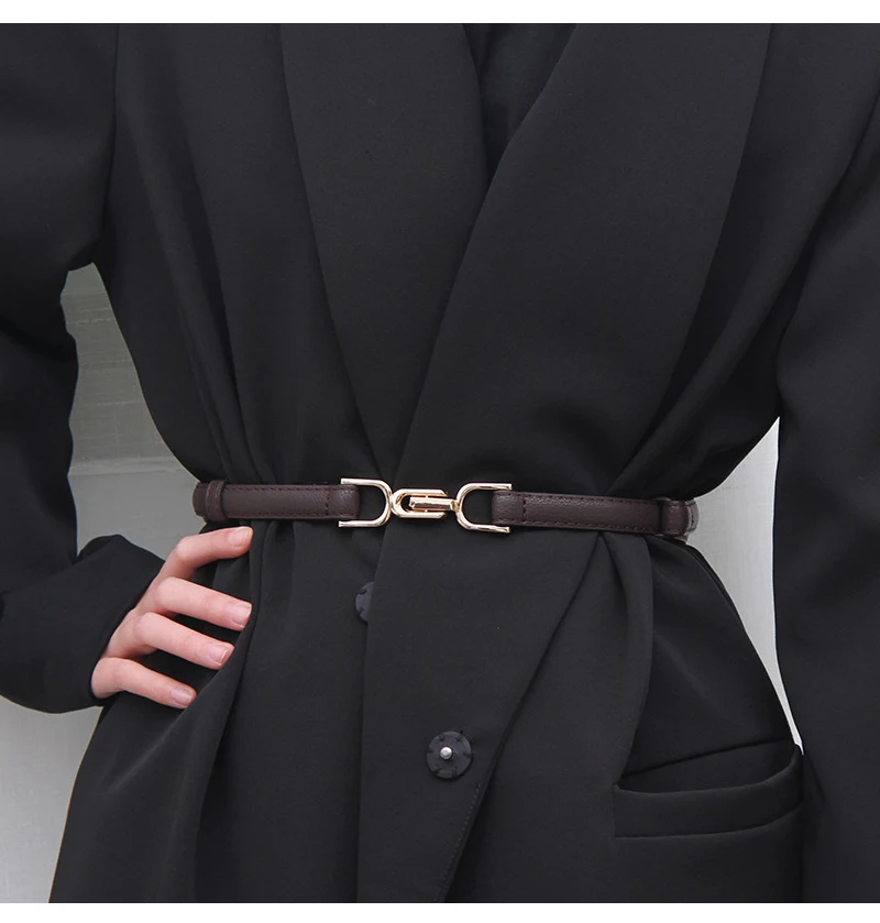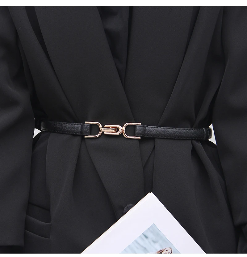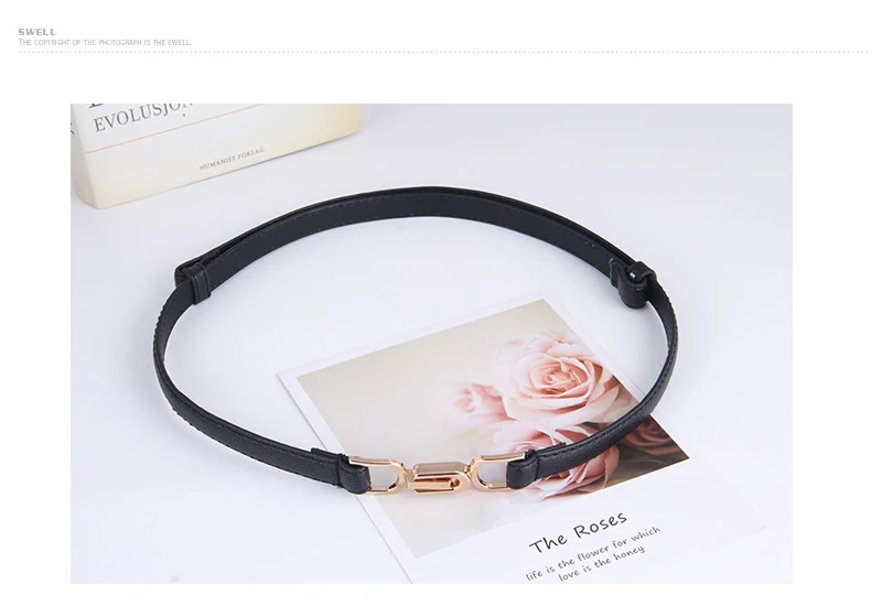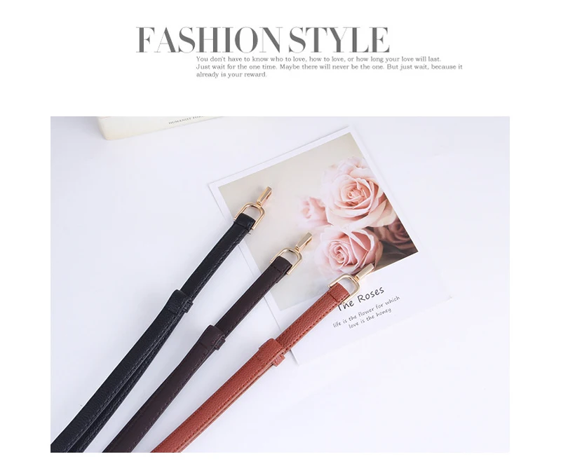 Womens Leather Skinny Belt for Dress Adjustable Thin Waist Belt Dress Belt with Vintage Gold Buckle Faux Leather